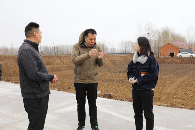 4月2日上午,冒著淅瀝瀝的春雨,青口公司副總經理許太冬帶領樊家選、趙華兵兩位技術指導小組成員,來到海頭鎮(zhèn)龍河村新復墾的240畝土地現(xiàn)場,與結對聯(lián)建的龍河村村委成員熱切交流,為新復墾的土地發(fā)展規(guī)劃出謀劃策。