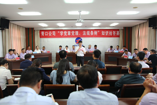 為推動黨員干部進一步掌握基本標準,增強黨的意識、黨員意識、紀律意識,更好地堅守初心、踐行使命,6月23日上午,青口公司舉辦“學黨章黨規(guī)、法規(guī)條例”知識搶答賽活動。來自公司8個支部的24名選手參加了比賽。公司黨委班子成員出席了活動。機關全體管理人員、各單位黨政工負責人到場觀看。