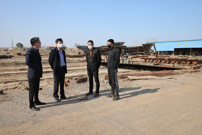 胡傳法一行來到位于公司境內(nèi)的船舶修造廠,對(duì)該廠安全管理制度是否健全、安全管理措施是否完善、操作人員資質(zhì)是否符合規(guī)定等方面進(jìn)行了重點(diǎn)檢查,詳細(xì)聽取了該廠主要負(fù)責(zé)人采取的安全管控措施等情況。