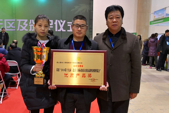 新年伊始,萬象更新,公司 “鹽田玉”大米再獲重量級榮譽。在 2018第十九屆(北京)國際優質大米及品牌雜糧博覽會上,我公司鹽田玉香米經過產品品質檢測、品嘗、營養分析等程序審核,完全符合評獎要求,在600多家參展企業中脫穎而出,被授予“優質產品獎”榮譽稱號。