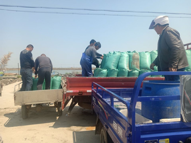 隨著氣溫日漸升高,三洋分場(chǎng)境內(nèi)養(yǎng)殖戶們紛紛忙碌起來(lái),部分完成了梭子蟹、東方對(duì)蝦苗種投放工作的養(yǎng)殖戶池塘,開(kāi)始投喂鮮活的海沙餌料。據(jù)了解,今年海沙單價(jià)約2/每斤,較去年同期偏高。(劉洪文)