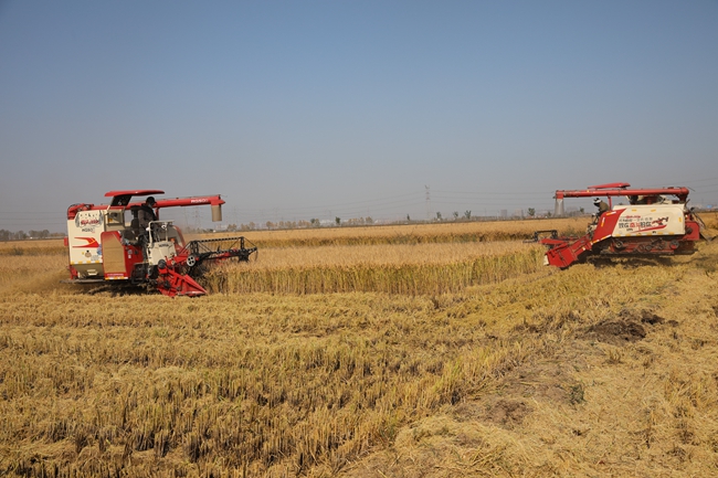 當前正值秋收大忙的關鍵時期,大新農場到處可見機械來回穿梭地收割、運糧、堆糧場景,空氣中彌漫著淡淡的稻香,一派繁忙的豐收景象。為確保秋糧顆粒歸倉,公司秋收工作組在田間和曬場間奔忙著,計量稱秤、農機管理、巡查值守、后勤保障,統籌安排搶抓晴好天氣抓緊水稻收割,全力打好秋收攻堅戰。農場從11月4日開始進入收割期,十幾臺收割機、拖拉機等農機全部投入生產,收割機每臺每天基本可以收割30畝左右,農場自營的5500余畝水稻預計于本周內全部收完。今年天氣多變性小,適合水稻生長,預計今年水稻的產量將高出去年。(大新農場)