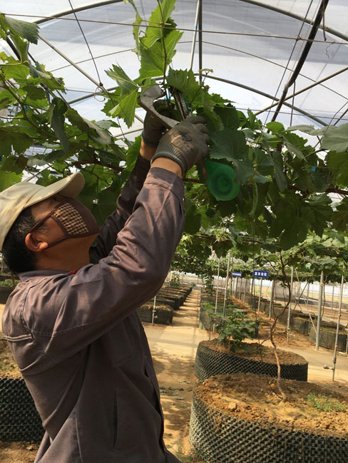 走進(jìn)炎熱的六月,種養(yǎng)中心大棚內(nèi)的葡萄也迎來了第三個(gè)果期 ——坐果,果實(shí)的第一次膨大。中心工作人員及時(shí) 摘心、去副梢,適當(dāng)控制營養(yǎng)生長,以利于集中營養(yǎng)供應(yīng)果實(shí)的生長發(fā)育;及時(shí)綁縛新梢,為下一期的轉(zhuǎn)色、成 熟做好鋪墊。(宋姍姍)