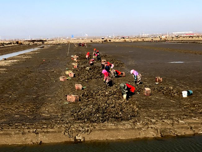 近日,養(yǎng)殖戶們紛紛對(duì)池塘進(jìn)行施工改造、挖新蟶板,部分池塘對(duì)已達(dá)到規(guī)格的 縊蟶開始起捕銷售,為新一年的養(yǎng)殖生產(chǎn)、投放苗種做好準(zhǔn)備。圖為黃沙分場(chǎng)前進(jìn)組趙新凱池塘起捕縊蟶。 (黃沙分場(chǎng))