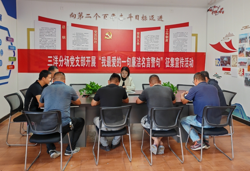 在中秋、國(guó)慶即將到來之際,為增強(qiáng)黨員干部廉潔意識(shí),營(yíng)造濃厚的清廉文化氛圍,將黨風(fēng)廉政建設(shè)向縱深推進(jìn)。9月14日上午,三洋分場(chǎng)黨支部在黨員活動(dòng)室開展“我最喜愛的廉潔名言警句”征集宣傳活動(dòng)。