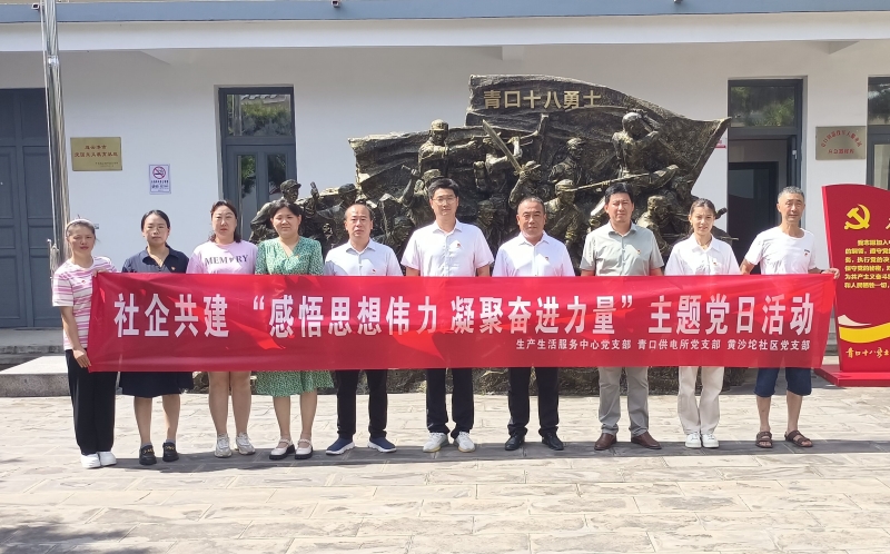 為深入學習貫徹習近平新時代中國特色社會主義思想,努力在以學鑄魂、以學增智、以學正風、以學促干方面取得實實在在成效, 8月2日,生產生活服務中心黨支部聯合黃沙坨社區黨支部、青口供電所黨支部,以黨建聯建為載體,組織黨員前往贛榆十八勇士紀念館開展“感悟思想偉力 凝聚奮進力量”主題黨日活動。