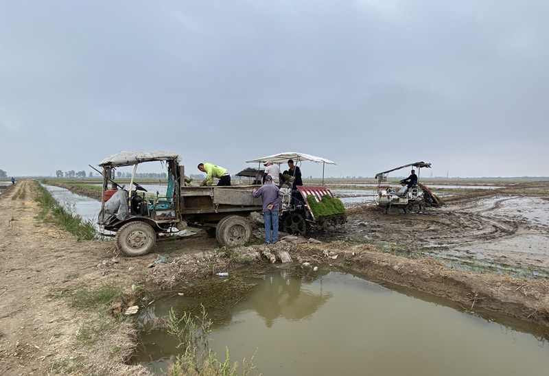近日,大新農場插秧工作序時啟動,農場支部積極組織紅色先鋒服務隊紛紛奔赴生產一線,送技術、送服務,運秧互幫互助,實實在在解決用工難、用工貴等方面,充分發揮先鋒模范帶頭作用,助力高標準做好插秧工作。(王 璐)