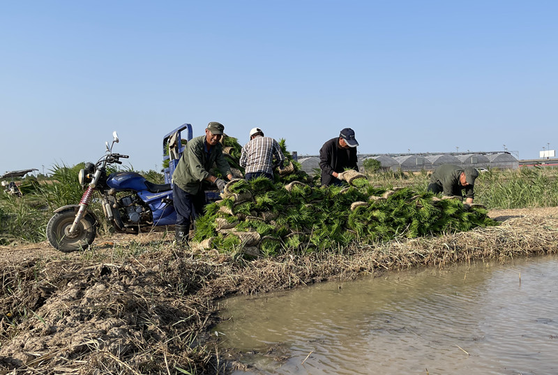 近日,為保障水稻移栽有序進行,在倉儲中心田間地頭,支部黨員職工齊上陣,解決農忙時節勞動力緊缺問題,讓黨旗飄揚在田頭。(王 偉)