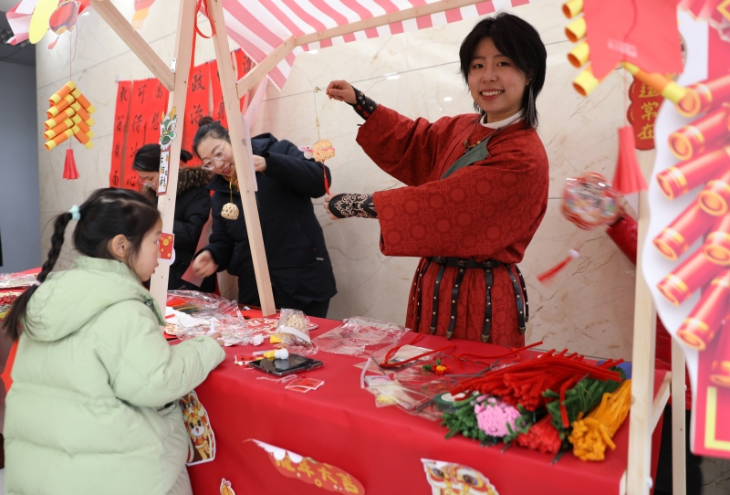 剪窗花、寫對聯(lián),是迎接新年必不可少的傳統(tǒng)習(xí)俗,承載了我們對新一年的美好期望。在傳統(tǒng)民俗區(qū),大家沉浸式體驗這些傳統(tǒng)習(xí)俗,有的揮毫潑墨,“寫春送福”,有的剪紙寄情,剪出各種各樣象征生肖、團(tuán)圓、吉祥的窗花,不一會兒,一幅幅滿載新年祝福的春聯(lián),一張張年味濃濃的窗花,就展現(xiàn)在大家面前。