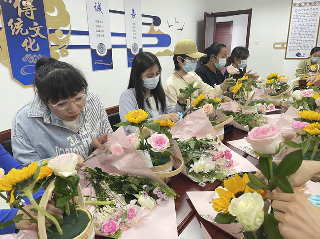 接下來,女工委組織了插花活動,特邀插花老師現場講授插花知識及技法,借用花木來抒發(fā)女職工以花感人,以花育人,意在培養(yǎng)女職工善于表達對母親的愛及祝福。在花藝師的悉心指導下,女職工們用自己靈巧的雙手,盡情發(fā)揮創(chuàng)造力,為母親制作一個美麗、飽含感恩之情的花籃。