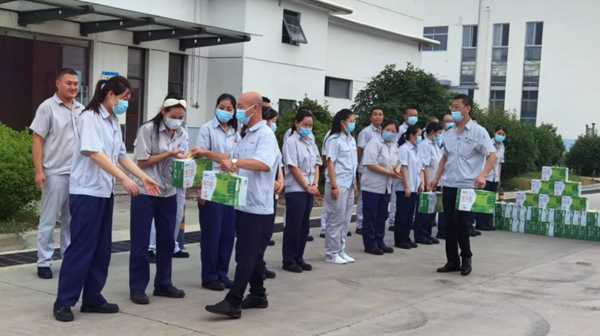 7月19日下午,公司黨支部書記、總經理韓立新代表公司開展夏季送清涼活動,為全體職工送上組織的關懷和貼心準備的牛奶等防暑降溫慰問品,給炎熱的夏季帶來一縷清風,進一步激發了職工的工作熱情。(神特宣)
