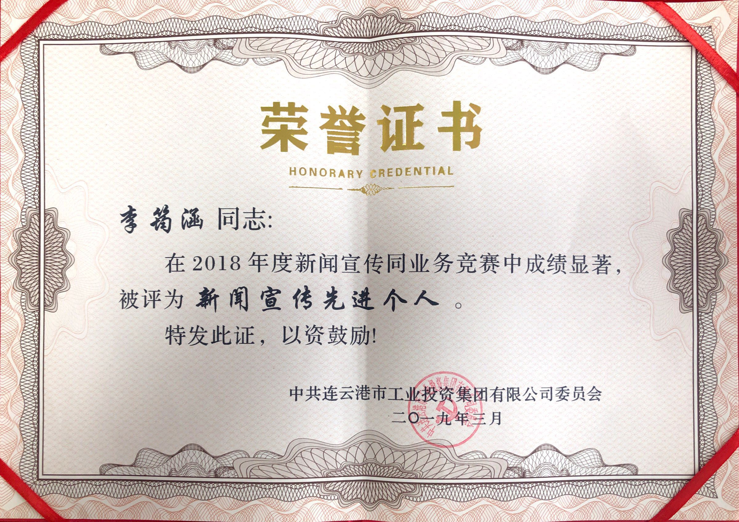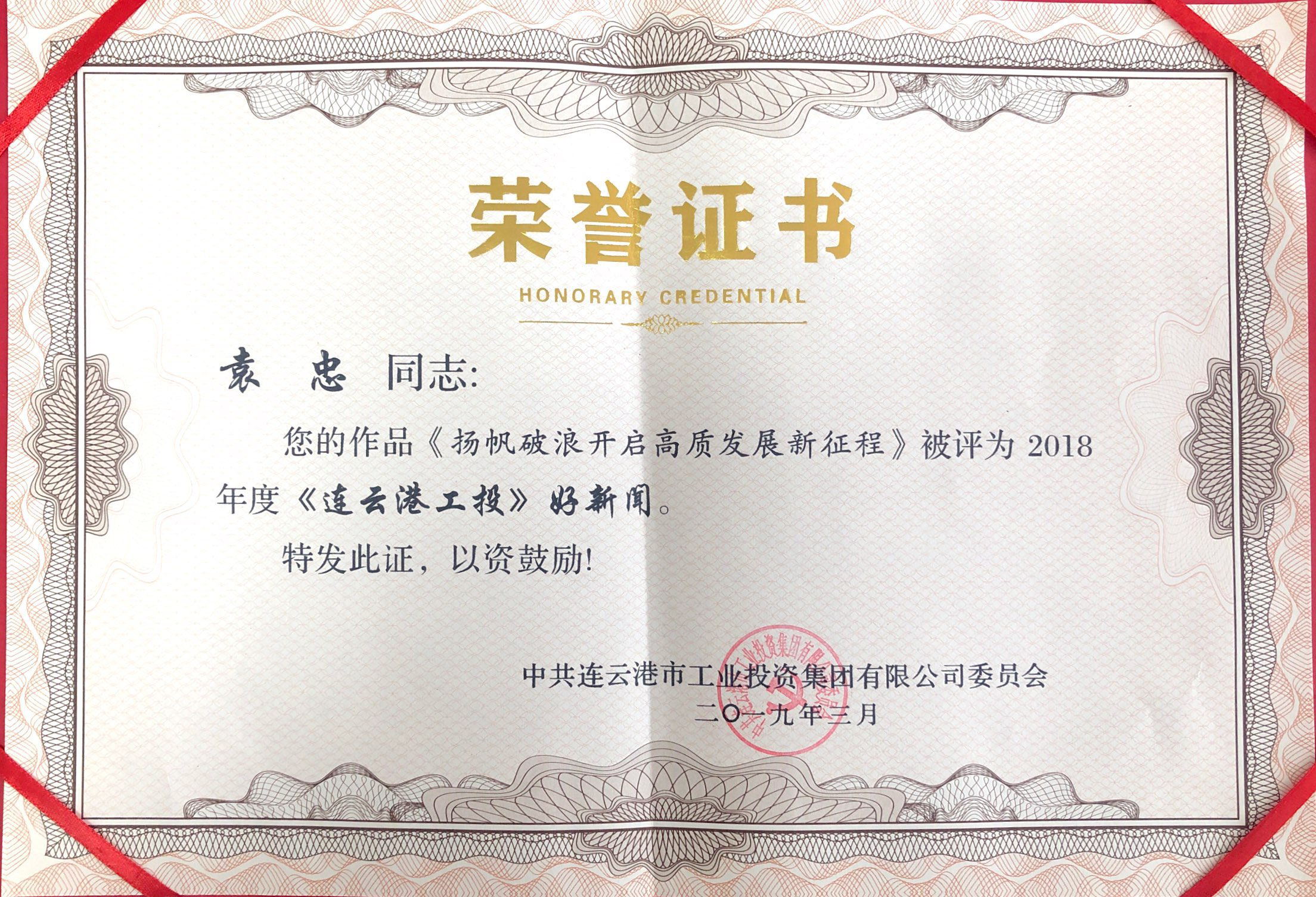 3月15日下午,集團黨委召開了“聚焦高質高效,聚力創新創優”黨內主題教育實踐活動部署推進會。會上,我公司被評為“2018年度新聞宣傳工作先進單位”;黨支部副書記袁忠所著評論文章《揚帆破浪開啟高質發展新征程》,入選“2018年度《連云港工投》好新聞”;李筠涵獲得“2018年度新聞宣傳工作先進個人”稱號。