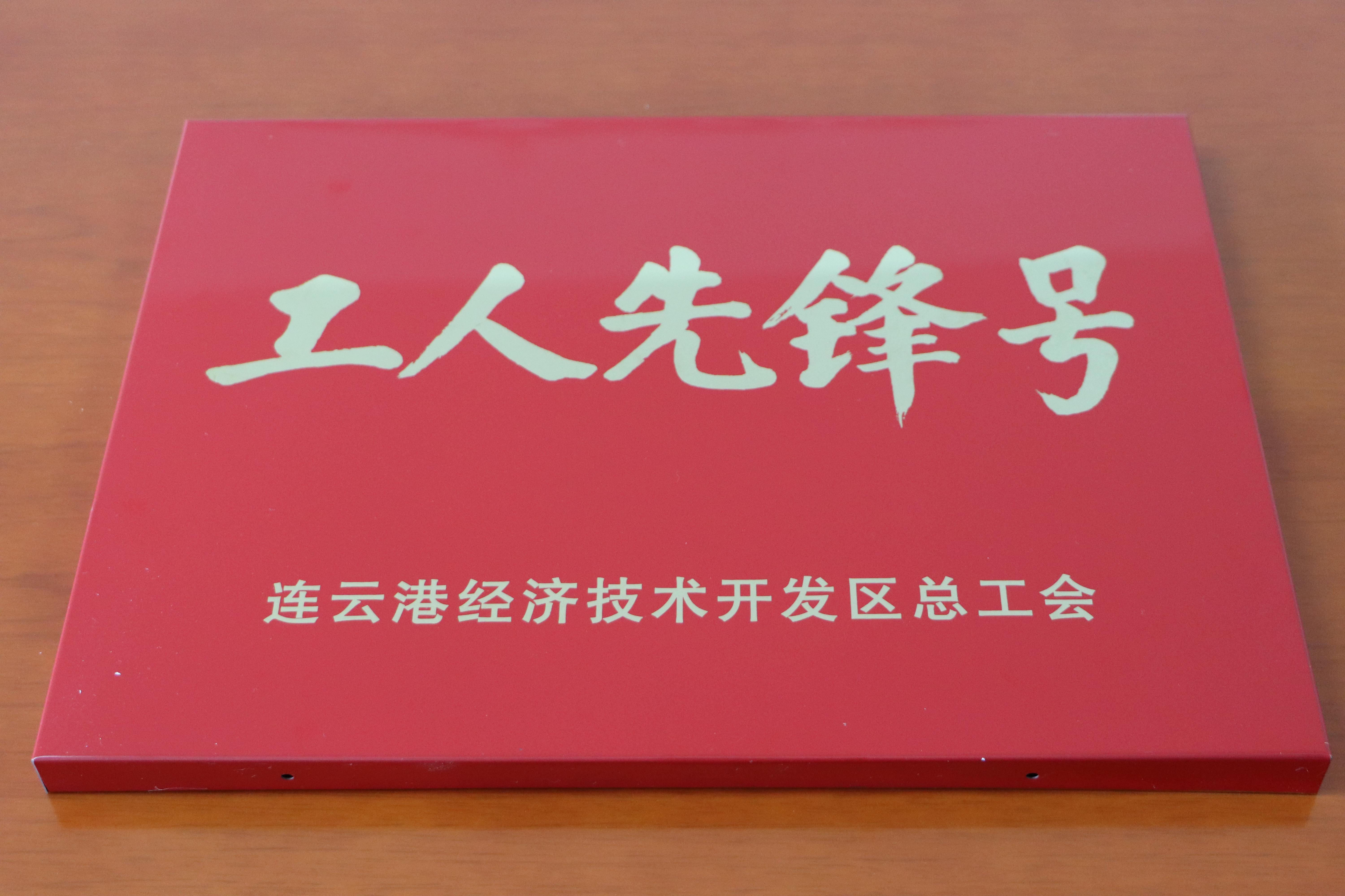 近日,公司捷報頻傳,自生產線一名員工被授予市勞模稱號后,5月11日上午,公司又從猴嘴街道辦事處工會領回獎牌,公司生產丙班被授予“連云港經濟技術開發區工人先鋒號”。