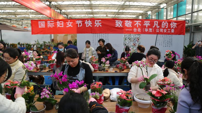 ? ? 情暖三月,巾幗芳菲相競妍。在“三八”國際婦女節來臨之際,為展現公司女干靚麗風采,豐富文化生活,3月6日下午,臺北(華茂)公司工會組織50余名女職工代表在市振興花卉城開展“國際婦女節快樂 致敬不平凡的你”慶婦女節插花活動,展現新時代女性風采。