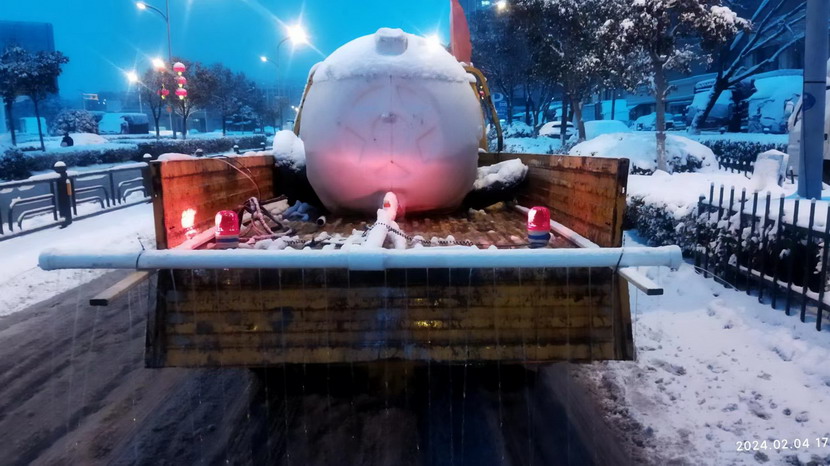 ? ? ? ??2月4日上午大雪“如約而至”,袁桂誠和他的小伙伴們按奈不住,躍躍欲試,公司領導一直說:沒到時候,再等等,用你們的時候肯定是最關鍵的時候。