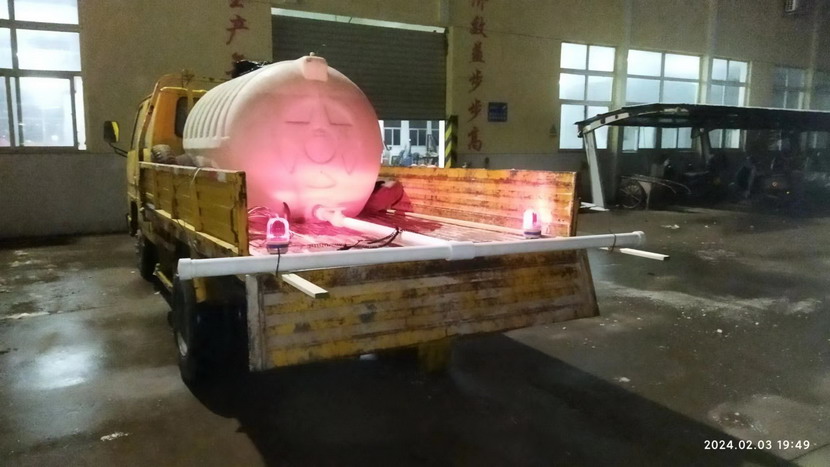 ? ? ? ??想起來就干。袁桂誠召集吳軍兵等工友,連夜趕制“核武器”。先找來去年夏天為綠化帶澆水用的大水桶,洗涮干凈,膠制管道與之相通。為了灑鈣液均勻,管道全身打上細細小孔,將這套設備安裝在工具車上。