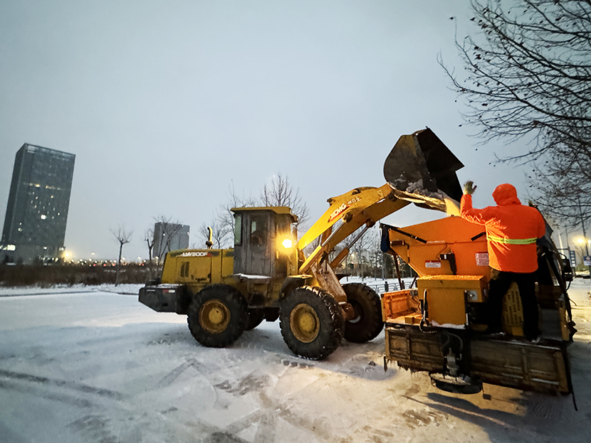 ? ? 此次掃雪除冰行動(dòng),采用人機(jī)結(jié)合方式,調(diào)派鏟雪車、裝載機(jī)等機(jī)械設(shè)備,對(duì)東方大道、黃海大道、花果山大道、242省道等主要干道人行便道、交叉路口,新海連大廈、火車站東站等重要地段的路面冰雪進(jìn)行突擊清理;對(duì)各條干道的橋面及馬山立交橋、新光路下穿立交等坡度路面鋪灑氯化鈣除雪劑融化冰雪。