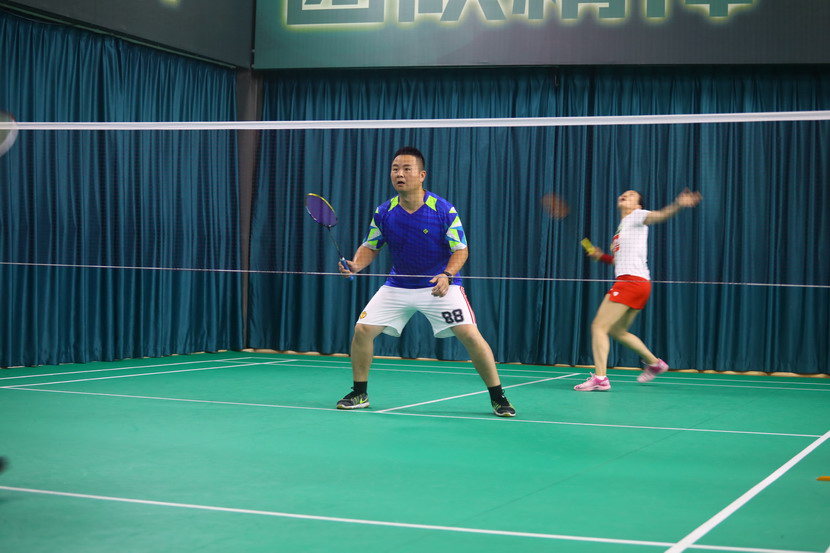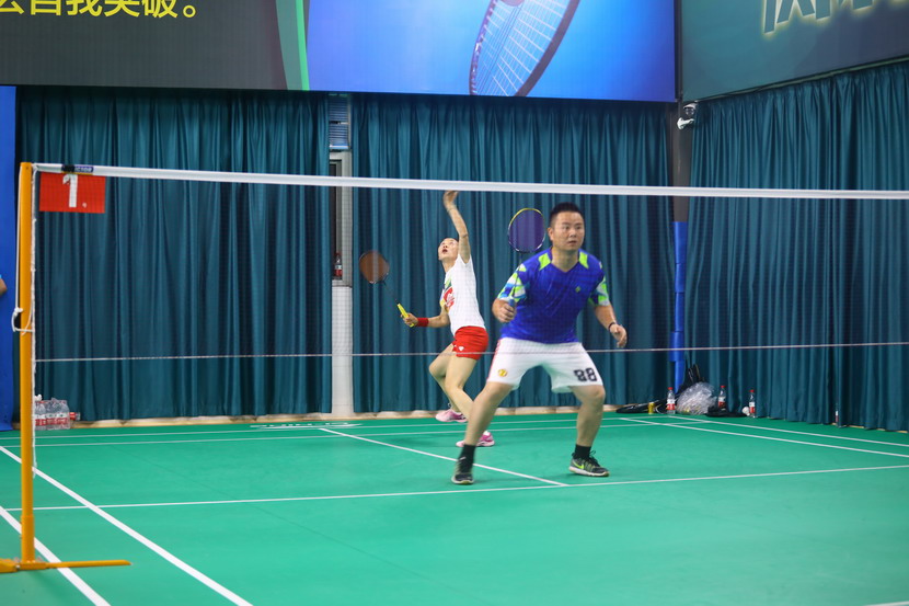 下午進行的混雙淘汰賽迎戰(zhàn)實力強勁的對手集團機關、神特、氨綸公司隊,我臺北公司隊打出亮眼表現。比賽中,隊員毫不退讓,盡力抓住每個得分機會。在混雙“雙保險”失利一組的情況下,另一對選手張海寧、袁桂芹穩(wěn)扎穩(wěn)打,逐漸打出了氣勢,后場高球、網前輕吊、大力扣殺……他們以犀利的進攻直下三城,成功殺入決賽。