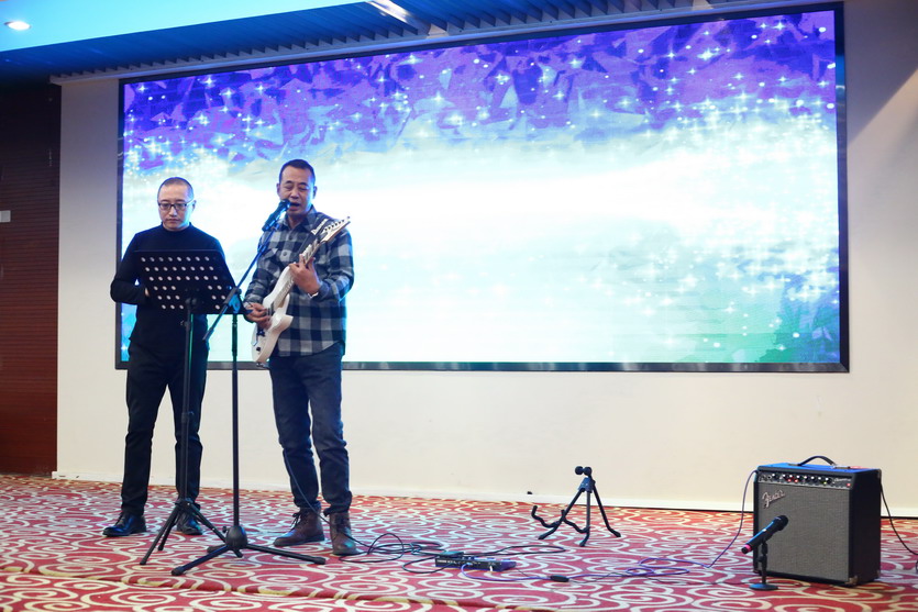 聯(lián)歡會節(jié)目豐富多彩,有獨(dú)唱、小合唱、魔術(shù)、游戲等。精彩的表演贏得了全場陣陣歡聲笑語,雖然表演很業(yè)余,但大家各個(gè)精神抖擻,充分展示了公司員工的蓬勃朝氣和奮發(fā)進(jìn)取的精神。在熱烈氛圍的感染下,公司領(lǐng)導(dǎo)也紛紛上臺表演節(jié)目為晚會助興,楊善革《我愛你塞北的雪》對新年的祝福和期盼,表達(dá)了迎新年的喜悅心情。公司黨委書記、董事長、總經(jīng)理王德志一曲《南泥灣》更是唱出了公司全體員工熱愛祖國,熱愛企業(yè),立志艱苦奮斗、自力更生,決戰(zhàn)2022,打贏臺北保衛(wèi)戰(zhàn),再創(chuàng)臺北新輝煌的決心。