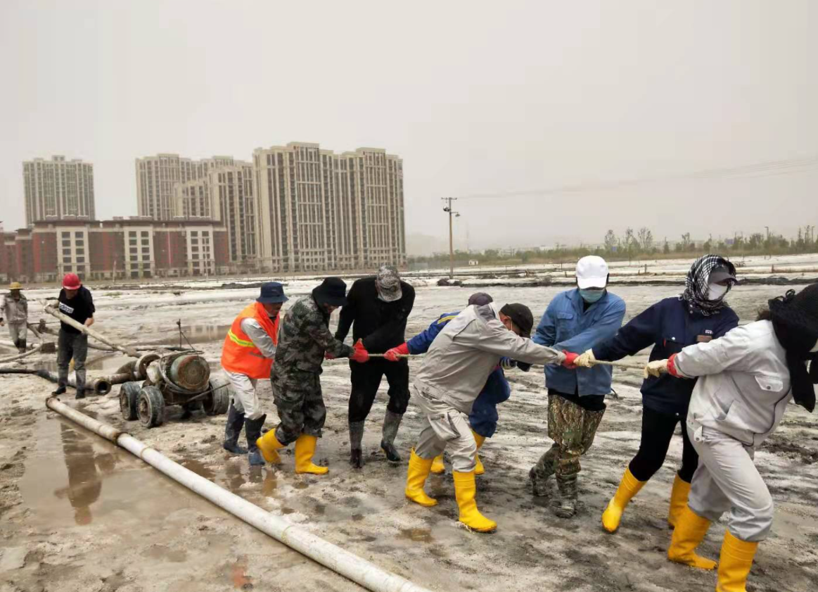 “百日會戰”完美收官,大家以黨史學習教育為精神動力,弘揚“四再”創業精神,淬煉“四拼”工作作風,展現出強有力的政治責任感和歷史使命感,在廣袤的鹽田上,用勤勞的汗水譜寫“四個最”的美麗華章。開局最早,搶抓春景好時光,開創歷史最早記錄,“破天荒”地從大年初十開啟扒鹽。戰線最長,以西灘機械扒鹽為起點,歷經東灘、大八組、海濱人工扒鹽,二組、西灘雙線齊上、火力全開,至東灘機械扒鹽落下帷幕,實現了“漫漫長征路”的圓滿勝利。歷時最久,整整百日一舉打破扒鹽歷時最久記錄,從冷冽刺骨的寒風,到烈日當空的火熱,從臃腫的棉襖,到清涼的短袖。困難最多,面對天時不利的氣象條件,面對著堿廠關停的嚴峻局勢,面對著環保安全的巨大壓力,面對著人手不足的現實問題,團結一心,攻堅克難,迎接挑戰,眾志成城筑鹽山,“暑霜春雪”顆粒盡歸倉。