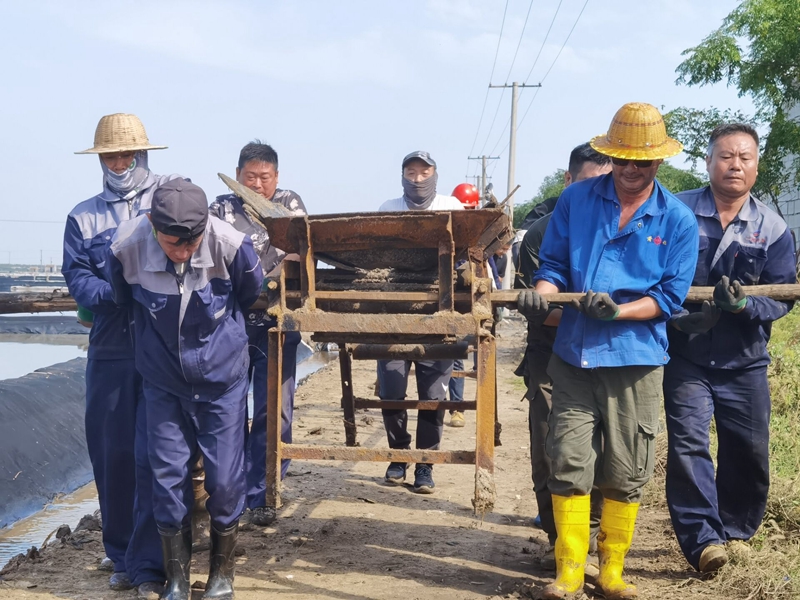 厲兵秣馬,鏖戰秋扒鹽。“同志們,這將是我們臺北地區1300年鹽業史上最后,也是時間最緊急、任務最繁重的一次秋扒鹽了”正是因為使命在肩,我們更要勇往直前。公司全體黨員干部爭分奪秒扒鹽、竭盡全力制鹵,奮戰100天,全力沖刺“開新局、奪首勝”目標任務。連云港堿廠關停在即,鹽鈣聯產項目終結,原鹽搶收進入到了大決戰時刻。為此,公司上下,從黨委班子到普通辦事員,從直屬單位到公司機關,全部動員起來,9月28日召開了戰前動員大會并進行秋扒崗前培訓。10月2日,天時地利人和,夜里9時10分,隨著機器一聲轟鳴,扒鹽機組輸鹽大架銀瀑飛濺,大八組、西灘雙向聯動,人工扒鹽、機械扒鹽齊頭并進。公司領導與廣大職工想在一起、干在一起,上下齊心、爭分奪秒,擼起袖子、甩開膀子,在鹽池間盡情地揮灑著汗水,確保勞動成果顆粒歸倉,誓奪原鹽收官戰全勝。截止6日晚,公司 排放鈣液6000方,扒鹽3000余噸。