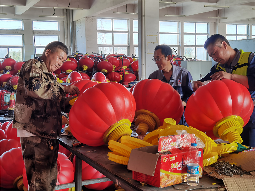 中秋國慶雙節(jié)將至,翔立分公司承接了LED燈籠和中國結(jié)的安裝工程。由于燈籠長期重復(fù)使用,部分配件已經(jīng)損壞、丟失,為了保證工程進(jìn)度,趕在中秋節(jié)前完成燈籠和中國結(jié)的安裝工作,翔立分公司所有職工和移動(dòng)抽調(diào)的部分的員工放棄節(jié)假日休息,主動(dòng)參與燈籠維修工作。所有人分工合作,將壞掉的配件拆掉,換上新的配件,再交由專業(yè)電工測試,確認(rèn)燈籠完好無損再由安裝人員運(yùn)輸至路邊安裝。
