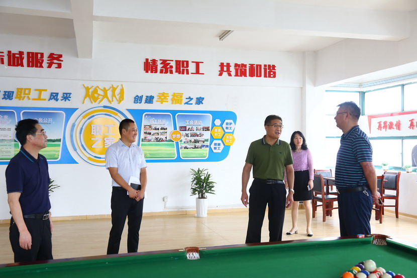 9月2日集團公司工會來臺北公司開展工會工作專題調研。集團領導劉承志帶隊,調研組一行首先來到臨達公司,參觀職工建家工作開展情況。劉主席對職工文體活動、文體設施、困難幫扶等一一詢問,并對今后發展作出指導。