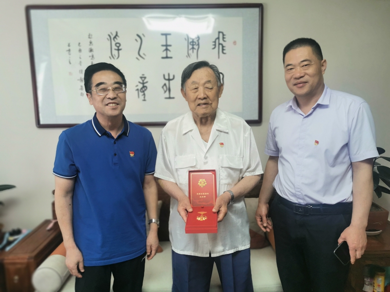 在慶祝中國共產黨建黨100周年之際,6月24日,集團公司紀委書記汪群一行和投資公司領導班子分別慰問走訪了老黨員,并為他們送去了“光榮在黨50年”紀念徽章。