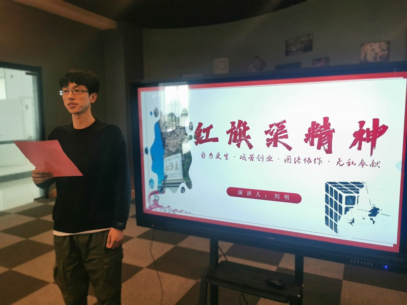 一場演講比賽——“自力更生、艱苦創業、團結協作、無私奉獻”,青年職工走上講臺,述說著勤勞勇敢的30萬林州人民,苦戰10個春秋,僅僅靠著一錘,一鏟,兩只手,在太行山懸崖峭壁上修成了這全長1500公里的紅旗渠的奮斗故事。