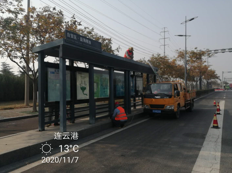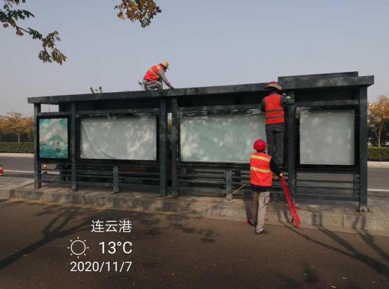 鏡頭一:7號清晨,享有翔立“鐵軍”扛把子稱譽的機械班已經熱火朝天的投入到黃海大道公交站臺除銹噴漆翻新維護施工中,據悉,該項工程共有12座公交站臺需要維護噴漆翻新,工程造價12萬元。