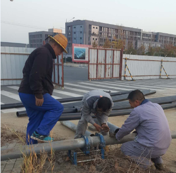 鏡頭三:東輸灌西的鈣液管道因使用年久老化,在新東方大道路下的穿越自然損壞,為了不影響鈣液銷售,搶修工作正“馬不停蹄”!