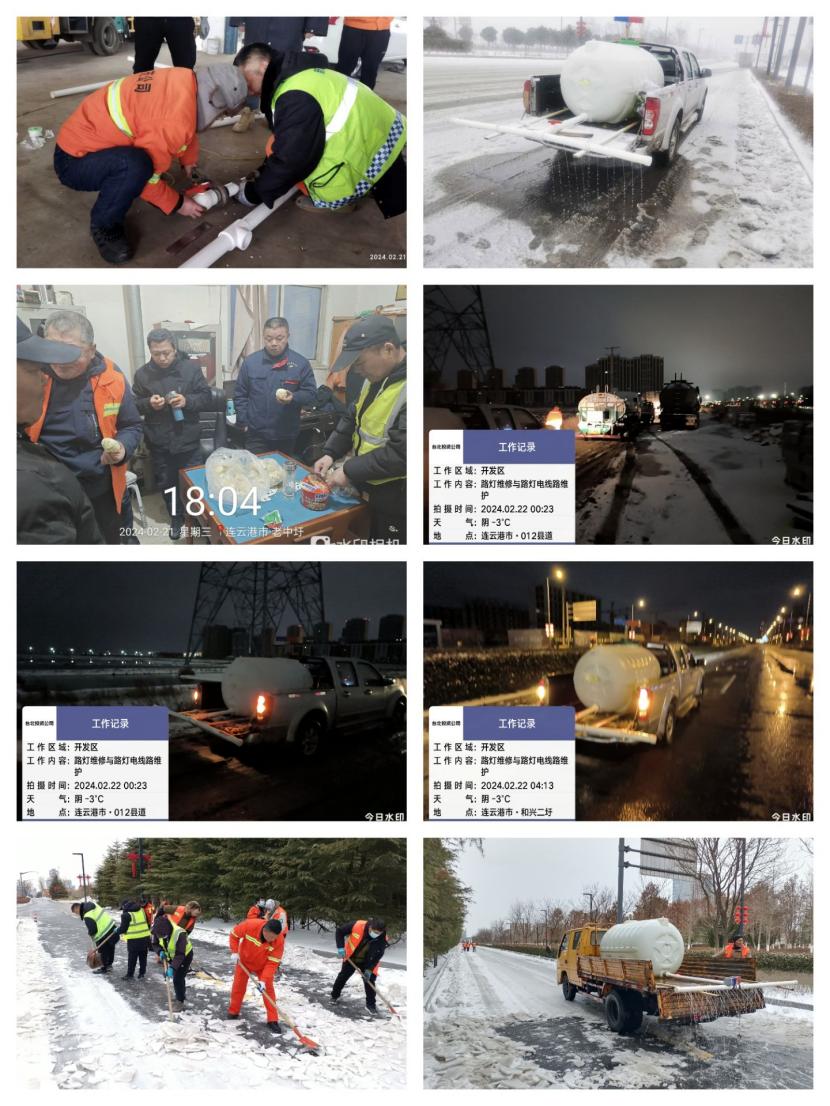 21日夜晚降雪漸止,該黨支部出動四臺車輛,按照設計好的路線多次往返于花果山大道、黃海大道、東方大道等開發(fā)區(qū)范圍內主次干道噴灑融雪劑。在公司負責人的帶領下,已連續(xù)3日吃住在單位靠前指揮,參加一線掃雪除冰活動。喬以成、袁桂誠等老同志隨車同行隨時解決技術難題保障除冰工作順利進行。由于路面積雪嚴重需要一便又一便的拋灑,該黨支部又合理安排人員車輛上半夜和下半夜不間斷噴哂保障路面不結冰,全體黨員干群頂著寒風、排隊抽取防凍液時踩著光滑結冰的路面在低溫下瑟瑟發(fā)抖,為了第二天人們的順利出行他們也是拼盡了全力,再一次展示了鐵軍的光輝形象。