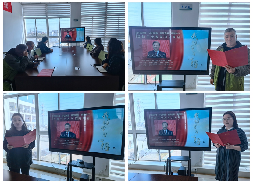 “作為一名基層單位主要負責人,要把黨的二十的精神內核化為推動本單位各項工作再攀新高的不竭動力,在資源挖潛上點土成金,在招商引資上建鏈補鏈,以不虧損為小目標,以超千萬為大任務,為公司和集團發展做出新的貢獻。”“習總書記在講話中多次提到從嚴制黨的重要性,作為公司及支部的紀律委員(專員),我要進一步用好嵌入式監督這個有力武器,為公司發展營造和諧穩定健康風清氣正的良好氛圍。”“作為一名普通一線電工,在原原本本學習了總書記講話后,深受感悟,我們的國家日益強大,我們的企業也在轉型發展中不斷跨出新的高度,新時代的偉大成就是黨和人民一道拼出來、干出來、奮斗出來的。”