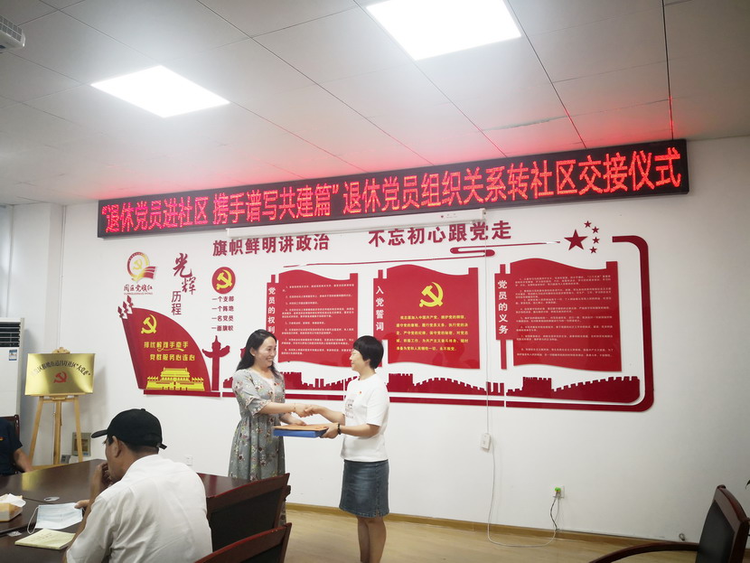 黨員組織關(guān)系規(guī)范轉(zhuǎn)接是事關(guān)黨員黨性和組織觀念的重要工作,是加強(qiáng)基層黨組織建設(shè)的基礎(chǔ)性工作。此次為退休黨員社會(huì)化管理工作啟動(dòng)以來(lái)移交到社區(qū)的退休黨員舉辦組織關(guān)系轉(zhuǎn)接儀式,標(biāo)志著此項(xiàng)工作已經(jīng)步入了正常化軌道,也為后續(xù)新增退休黨員“即退即辦”常態(tài)化移交工作打好了基礎(chǔ)。