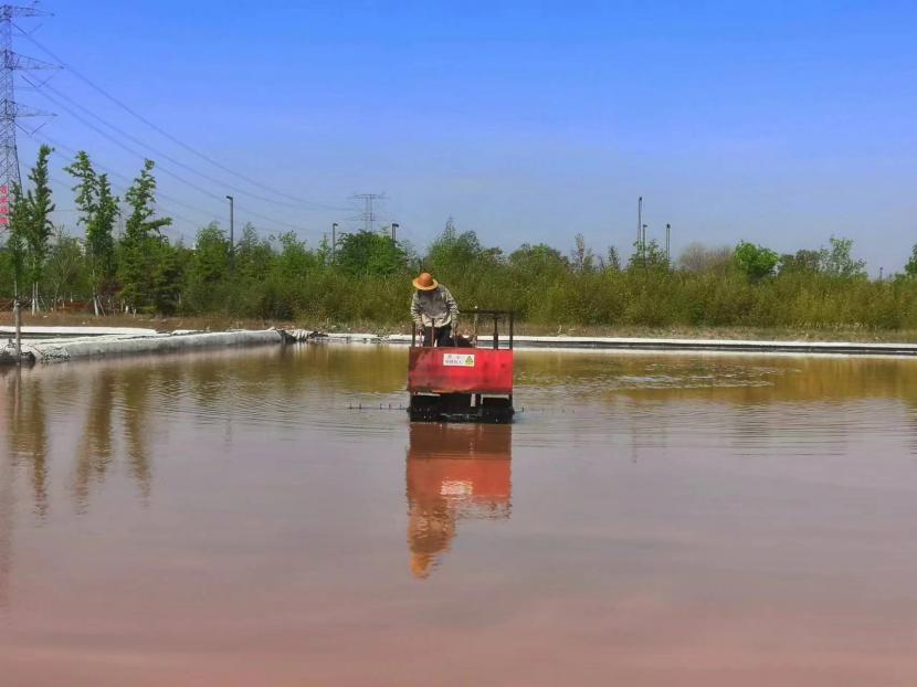 在原鹽生產(chǎn)中有一道重要的工序叫“活碴”,就是把結(jié)晶池中的鹽進(jìn)行翻動(dòng),翻動(dòng)后有利于鹽晶面生長,增加鹵水與鹽晶體的接觸面積,提高原鹽產(chǎn)量。每日清晨6點(diǎn)半,礦鹽班組準(zhǔn)時(shí)有一名工人駕駛活碴機(jī),對(duì)鹽池板進(jìn)行破碎翻動(dòng),保持鹽層的疏松和顆粒間一定的間隙,確保晶體長得既快又好。