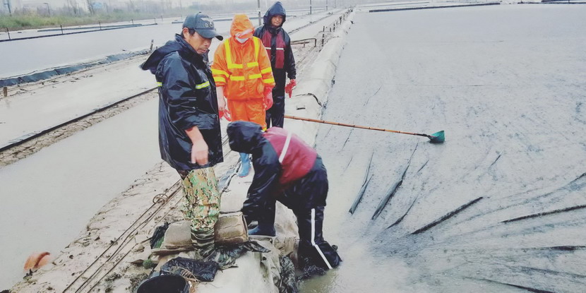 不僅僅是礦鹽班組,在海濱鈣液灘,老黨員、領(lǐng)灘手伏廣銀、董良平一直堅(jiān)守在崗,他們不僅干好自己的本職工作,在其他領(lǐng)灘手被居家管控的時(shí)刻,他們來(lái)到其他單元幫助走水以及其他日常工作,經(jīng)常一干就是12個(gè)小時(shí);在鈣液原料水儲(chǔ)備池,龔成春每天是按時(shí)按點(diǎn)到達(dá)灘地,進(jìn)行灘地巡視,做好巡視登記,沒有因?yàn)橐咔橛绊懚⒄`一天,遇上暴風(fēng)雨等惡劣天氣,他就住在值班室,每天晚上要加巡一次,保證僅有的原料水能得到最大化的利用;在鈣液銷售點(diǎn),程輝、徐松保響應(yīng)疫情防控應(yīng)急預(yù)案,備齊醫(yī)用口罩,酒精,消毒液等防疫物資,每天對(duì)前來(lái)的鈣液運(yùn)輸車進(jìn)行消毒,對(duì)司機(jī)進(jìn)行體溫測(cè)量、“三碼”登記,確保鈣液銷售安全有序。