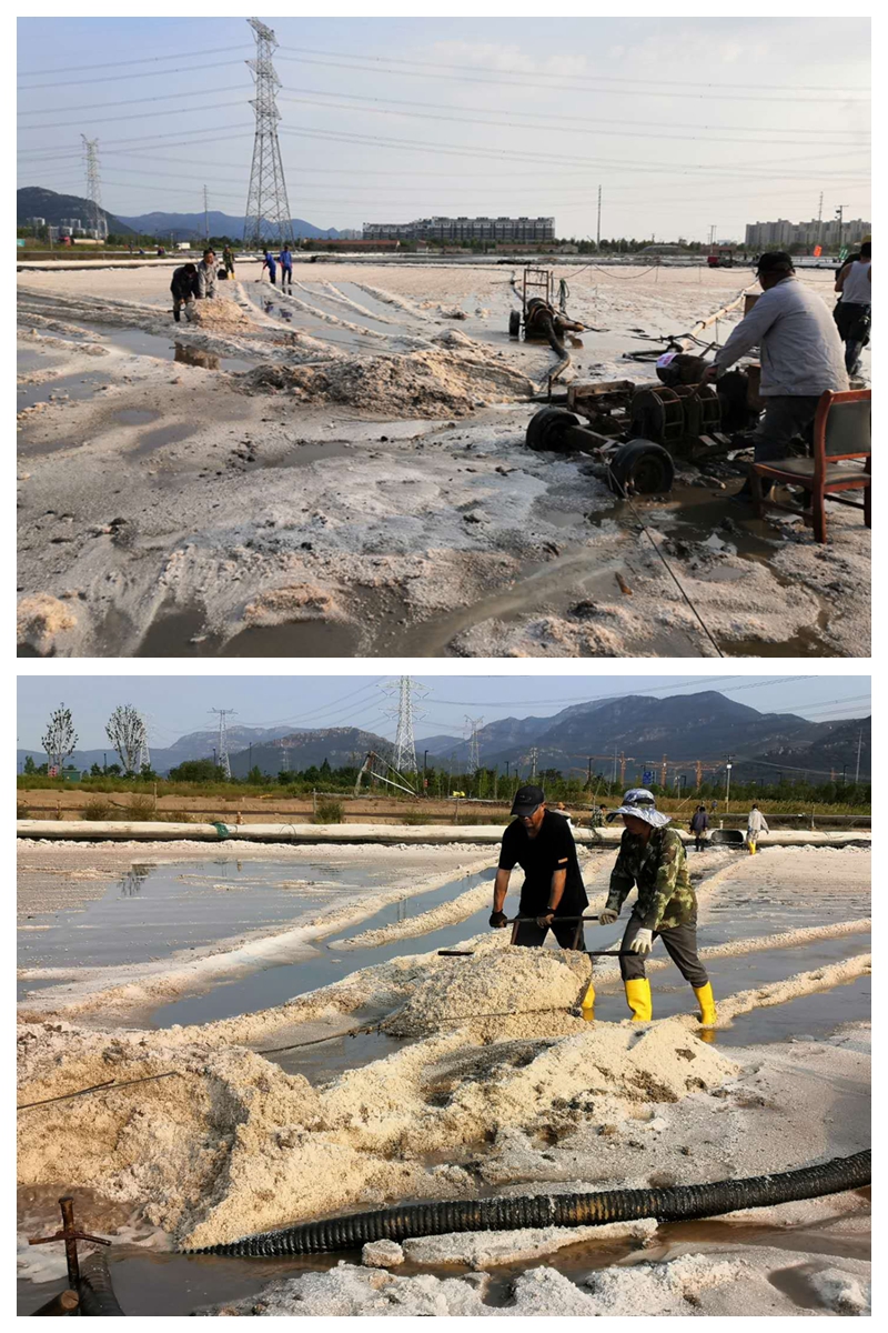 “大架在向后移動45公分,鹽鎊、鹵鎊與管頭螺絲擰緊沒有?觸電保安器試跳一下”…….扒鹽現場忙碌而有序,扒鹽人員對開機前準備工作再一次檢查確認。15:56分鞭炮齊鳴、禮花滿天,“秋扒”正式開啟。本次扒鹽采用人工與機械相結合的工作方法,根據鹽層的厚薄程度決定扒鹽的方式。此次扒鹽生產周期長、工作量大,工區認真組織、精心安排,制定了詳細、”人性化”的管理人員跟班督查值班表(男同志夜班女同志白班)。要求跟班人員,務必將“安全、質量”兩大主題貫穿整個秋扒工作的各環節,每天深入扒鹽點開展全面綜合性的定點檢查,重點圍繞“工藝執行、安全防范、護具穿戴”等,職工容易產生思想麻痹的細節工作,嚴明紀律,杜絕違章作業。搶時間爭速度,確保“秋扒”高效有序完成。