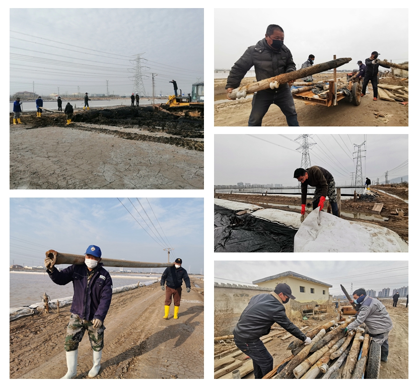 疫情來襲和征地影響給大浦工區2020年的原鹽生產任務帶來了的重大壓力,面對嚴峻的形勢,大浦工區迅速調整生產機制,制定應對措施,將受征地影響的1415班調整至先鋒東灘生產鈣鹽;將兩塊閑置地塊進行改造為春灌塑池,進一步擴大結晶面積;鋪設管道將已征塑池底碴鹽泡碴制鹵輸送到二組,對駁運完鹽的廩基沖化粉鹽制鹵,為原鹽生產降單耗打好基礎。全工區上下呈現出“大鬧生產”的良好氛圍,大浦人用奮斗唱響了最美的“鹽之歌”。