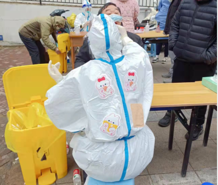 ? ? 12日? 7點(diǎn)集合,領(lǐng)裝備,鑒于昨天的教訓(xùn),早上沒(méi)喝水,吃了兩口飯,要不大白服就浪費(fèi)了。出了點(diǎn)意外,排小區(qū)把我們小區(qū)給忘了,沒(méi)醫(yī)生來(lái)支援,就三個(gè)醫(yī)生,三個(gè)點(diǎn),三張臺(tái),隊(duì)伍排的那叫一個(gè)長(zhǎng)。“請(qǐng)大家把健康碼打開(kāi),保持一米距離,戴好口罩!”這是我上午說(shuō)的最多的幾句話。咱們贛榆的醫(yī)生非常辛苦,累了一上午,下午還要采黃碼,掃樓,向他們致敬!中午剛領(lǐng)盒飯就通知徐州支援的醫(yī)生到了,來(lái)了十幾個(gè),扒拉兩口飯,開(kāi)始穿裝備。第七輪結(jié)束,感覺(jué)人都廢了,渾身濕透,嗓子疼,不想動(dòng)!