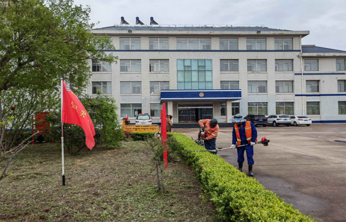 6月9日,該公司“黨員突擊隊+綠化養護技術骨干”20余人聯合組隊,充分發揮綠化管理專業技能優勢,為板橋邊防派出所內綠化帶進行清理修剪。工作現場,針對實際情況制定科學修剪方案。全體隊員手拿割灌機、綠籬機、一致排開,利用剪枝工具對樹枝進行修剪,并對剪下的殘枝和綠化帶的雜草進行清除。經過半天的辛勤勞動,修剪草坪500平方米、海桐綠化帶200余米及清理雜草20余車……。警營內綠化帶,樹木線條變得流暢、草坪平整干凈,整個環境面貌煥然一新。