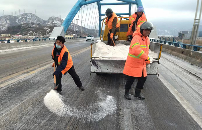 晚上7時,綠化,保潔班組聞雪而動,搶抓作業時間,連夜對管轄區內燒香河大橋、云港路、瑞和路橋梁坡道、結冰路段進行撒鹽融雪融冰作業,他們頂著寒風、冒著風雪,不停揮動手中的鐵锨,任憑風雪打在臉上,始終堅守在除雪第一線,他們是雪天最美的風景線,更是這個城市最樸實最可愛的守護者