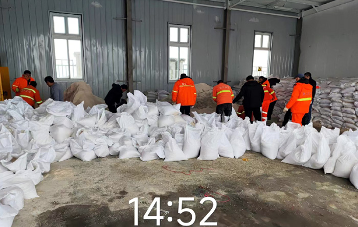 悅升公司按照責任分工,分包路段、分配任務,出動除雪機械設備,夜以繼日、奮戰一線,緊張有序地開展道路冰雪清除工作。本次出動保障人員160余名,兵分7路,2路裝卸隊負責將提前采購好的200多噸融雪劑有序裝車,5路道路保障隊負責各自區域內的冰雪清除。保障人員克服地面濕滑、氣溫驟降等不利因素,秉承“減存遏增”的理念,各路段按照人工+機械的方式,采取“邊下雪邊除雪”的工作模式,共出動2輛雪輥車、4輛大雪鏟車、1臺撒播機、運雪皮卡和廂貨車共11輛,循環開展除雪作業,各組之間配合默契,大大提高了工作效率。