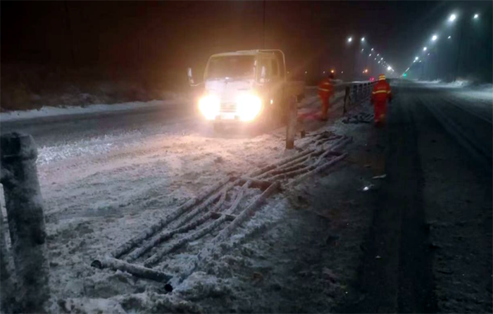 市政分公司根據公司安排,負責融雪劑裝卸工作,從2月3日下午到4日上午,市政分公司累計裝卸融雪劑已達150余噸。該分公司在做好保障融雪劑裝卸作業的同時,抽調4名精兵強將,處理因大雪導致的道路交通事故應急處置4起,應急處理道路護欄11節,約38米,防止交通事故二次發生。在5日凌晨更是經理盧正楊帶領10名黨員先鋒突擊隊,支援重點道路徐新路的融雪劑拋灑作業,僅靠雙手揮著鐵锨,通宵奮戰,迎難而上,高質高效完成融雪劑拋灑作業路段。(李濤)