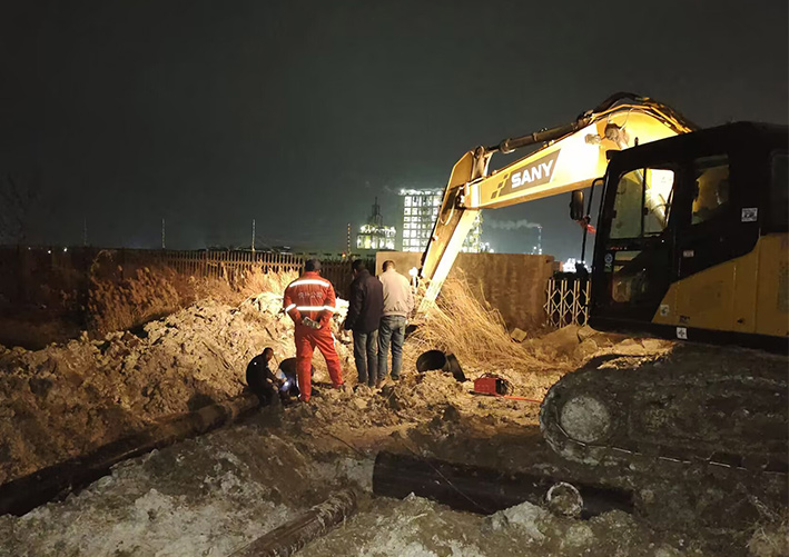 深夜10時許,一處施工現場,施工正酣,挖掘機轟鳴聲不斷,工人們還在加緊作業,雖冬日寒意逼人,工地上仍是一派熱火朝天的景象。陸建軍、季小東等施工人員克服重重困難,破路面,挖掘管路泥土,熔接,鋪設管道,在遇到的每個困難中,都傾盡全力,擔當作為。經過十余天緊張施工,已完成直徑400PE管道768米、直徑200給水管道804米鋪設工作,完成工作量99%,滿足了規劃的總體要求,后續修筑檢查井也在有序進行中。(楊維軍)