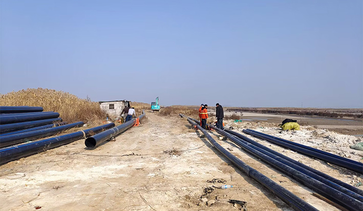 為確保工程順利實施,供水組一方面積極做好前期準備工作,另一方面經過實地勘察和技術論證,制定了科學可行的施工方案。施工從11月29日起正式啟動,過程中,嚴格按照操作規程安裝施工,各司其職。在先期挖掘管路泥土中,存在多地段淤泥地,需轉土圍堰加固并及時抽水護坡、熔接管道中,附近拋填土車輛較多,干擾大,考慮到安全等問題,及時調整方案,經大伙兒共同努力,鋪設管道等各項工作有條不紊地順利進行。