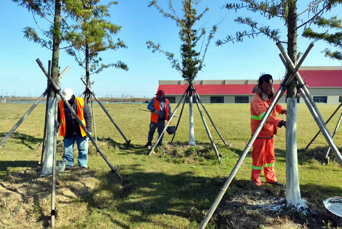 連日來,綠化分公司為為扎實做好冬季樹木養護工作,提高樹木的過冬、抗病和抗蟲能力,開展樹木涂白行動,為樹木披上“防寒衣”。