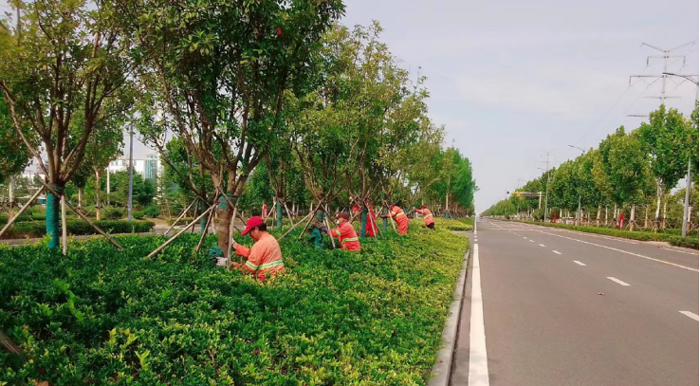精心部署管養方案。召開班子及綠化班組骨干人員會議,針對目前接手現狀,實事求是研究制定整改提升方案。結合秋季修剪任務,力爭在9月底實施到位。組織黨員突擊隊對祥和路、云港路、仁和路原施工方防寒布進行拆除,序時開展除草專項行動,集中力量加固樹撐。截止目前共拆除法桐、白蠟、欒樹、櫸樹、女貞等3200余株防寒布;加固300余株樹木;清除雜草2萬余平方。針對前期氣溫高、相對干旱天時,加強綠植澆灌補水及病蟲害工作。利用一個星期立足早晚搶進度,對重點道路綠植澆灌補水。特別是后補植的色帶、苗木增加澆水次數,確保澆透,保證苗木成活率。