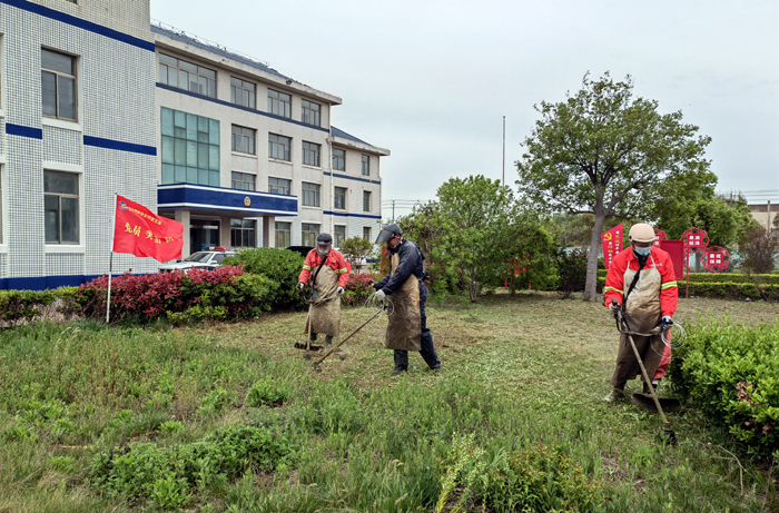 瑞南綠化班組開展“進邊防雙擁”活動,對板橋邊防派出所院內的綠化、樹枝以及雜草等進行清理修剪,他們動作麻利嫻熟,扛著沉重的打草機修剪草坪綠化帶。汗水在臉上如雨瓢潑,但他們依然不懼驕陽、不畏熱浪。工作中,熱情絲毫不減,臉上仍洋溢著笑容,為攜手邊防營區(qū)打造一個舒適美觀的環(huán)境。